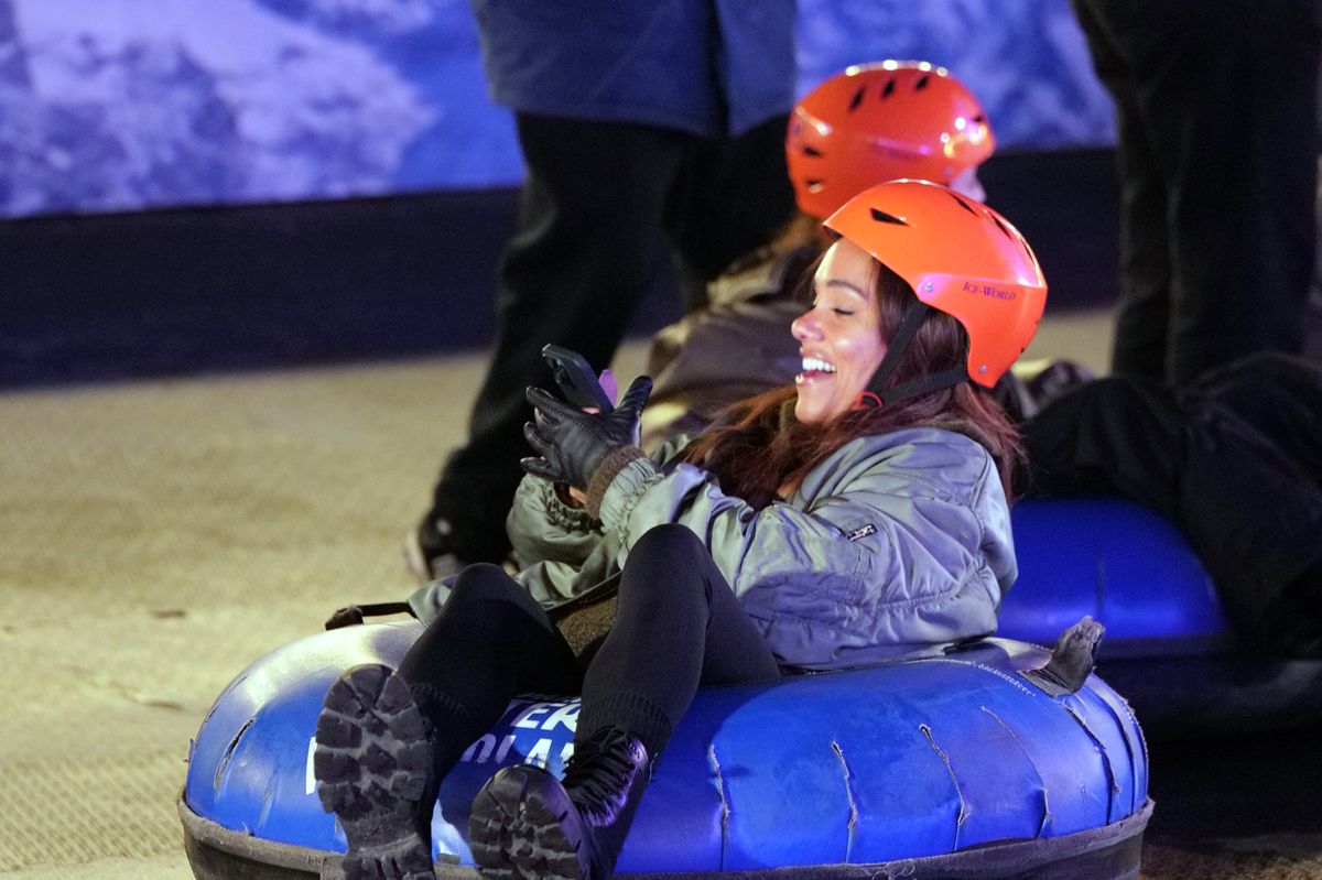 Holly Willoughby was seen posing in a festive red suit as she enjoyed a night out after a court heard how she broke a man’s neck after knocking him over in her £250,000 Mini Cooper.